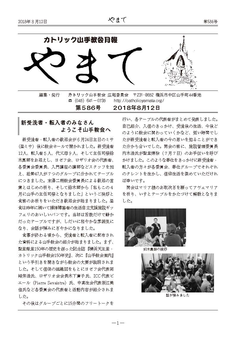 巻頭以降のページについては、カトリック山手教会にて配布しておりますカトリック山手教会月報『やまて』をお読みください。